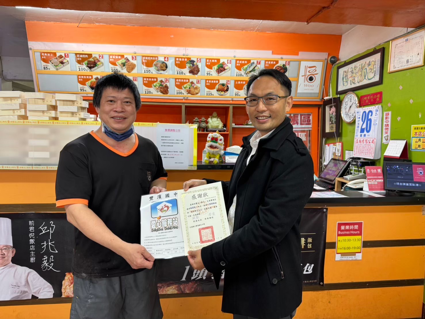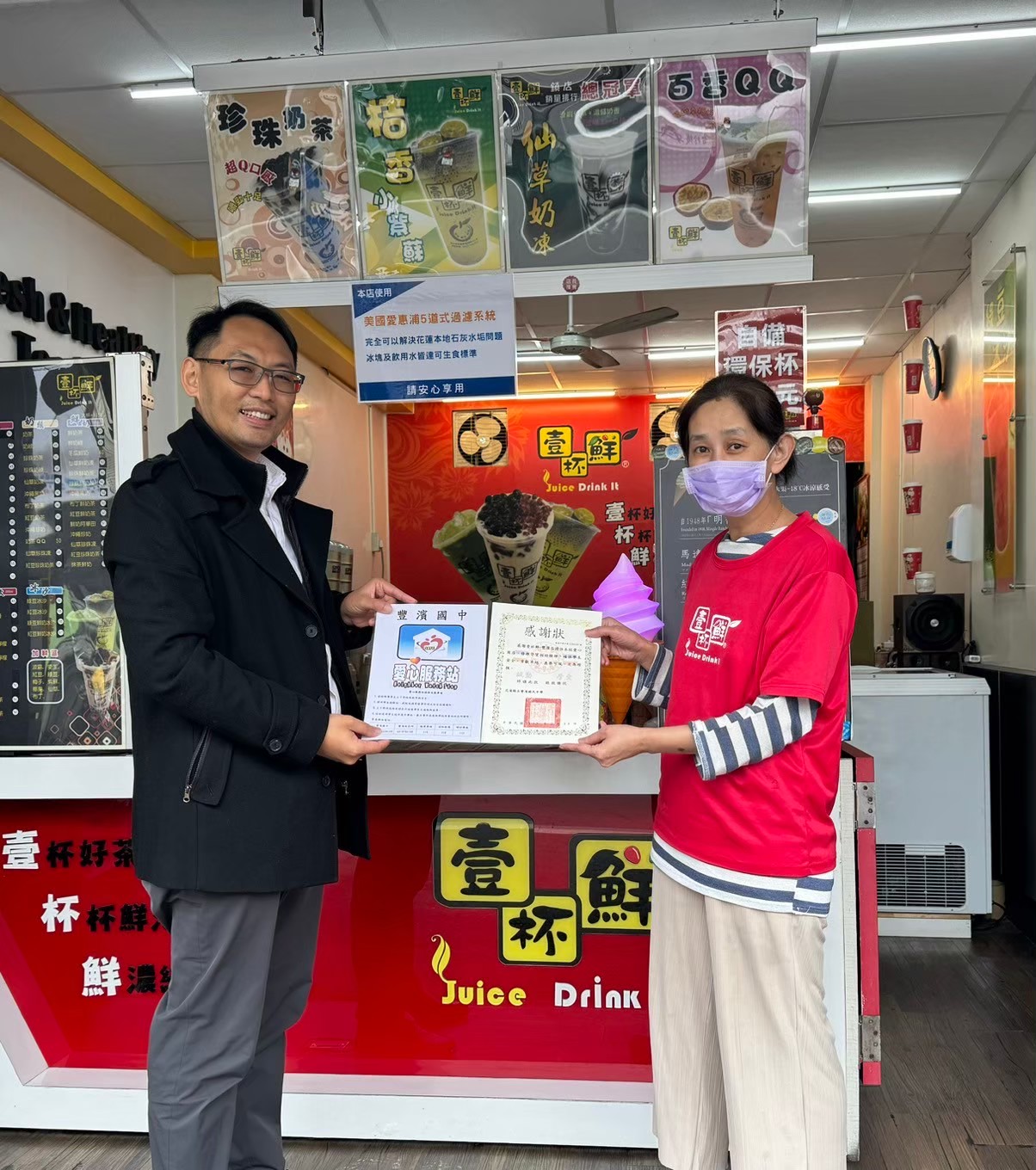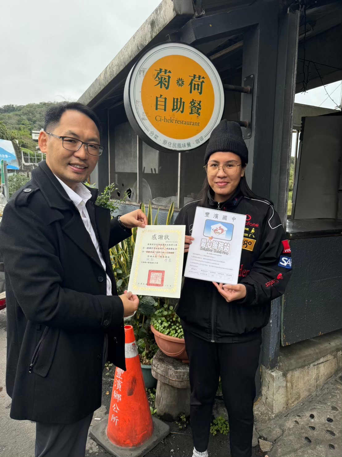 ????為營造安全的步行通學環境,本校結合警政、社區力量設立「愛心商店」,截至112學年度上學期已有11家加入,並於下學期陸續與商店協調以增加愛心商店數量,透過學區鄰近商家的共同幫助,串聯起豐濱國中學子們步行上下學安全、友善回家的路,為感謝愛心商店保障學子安全,本校也特別製作感謝狀,由施校長沿學生通學必經之路,逐間拜訪致贈。