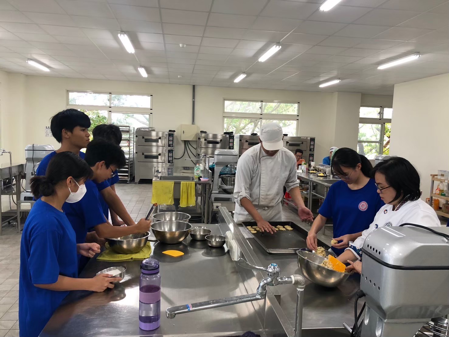 下午,我們來到了花蓮高農,進行餐飲科與食品科的手作餅乾實作,兩位科主任與技藝競賽得獎的學姊們一同帶領,讓每個孩子都頓時成為點心製作達人,經過主任們的介紹,也令孩子們清楚餐飲科與食品科的差異性,在未來的科系選擇中,如何找到適合自己並能發揮所長的工作。