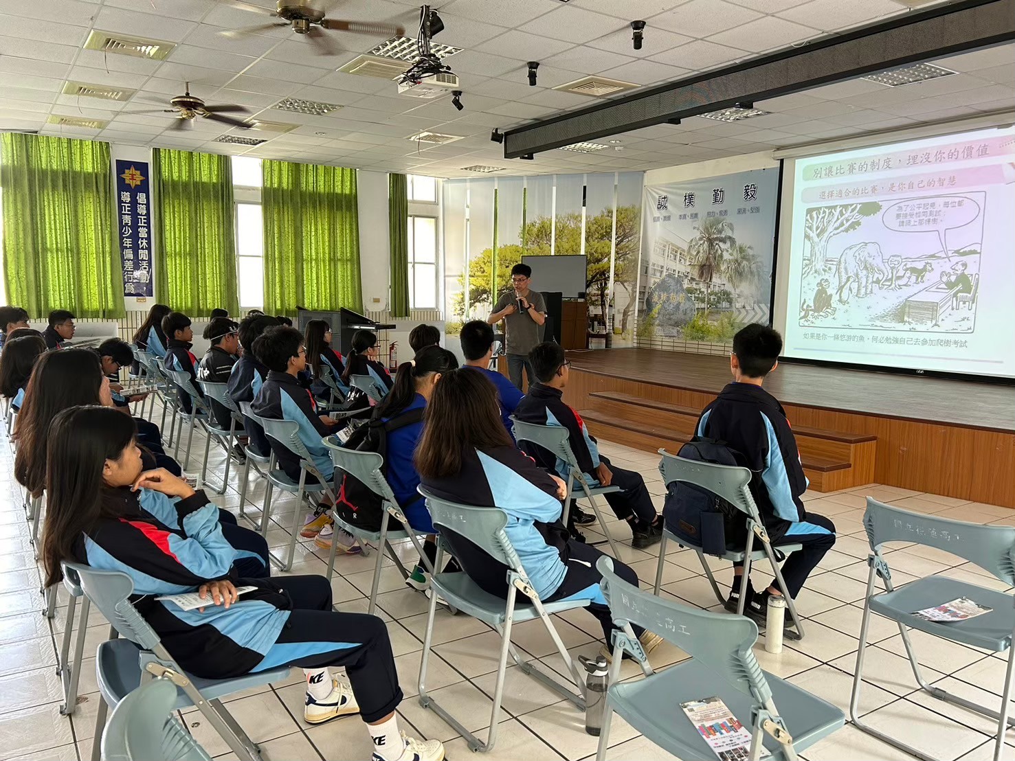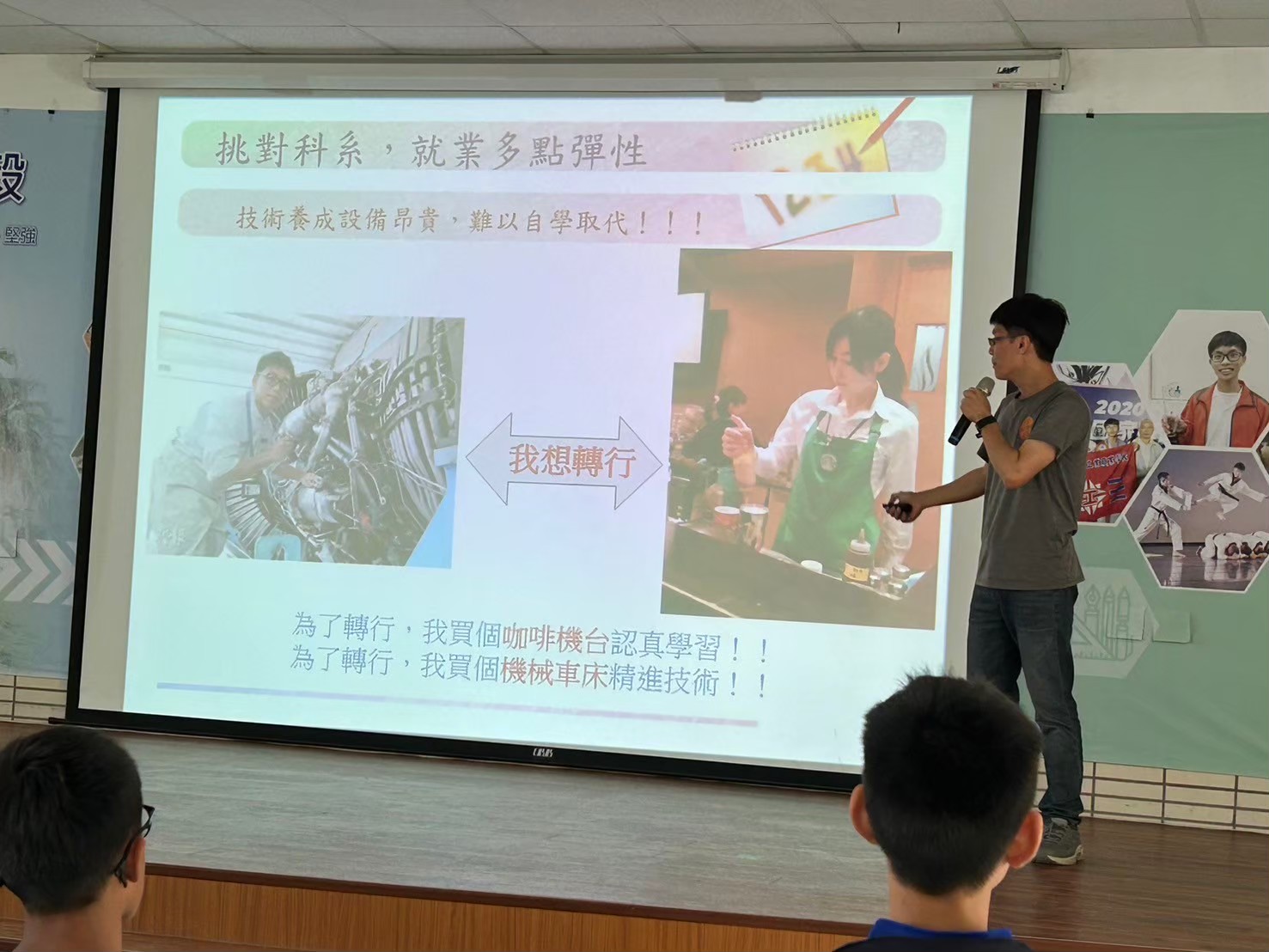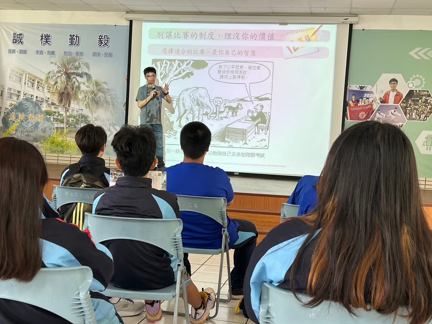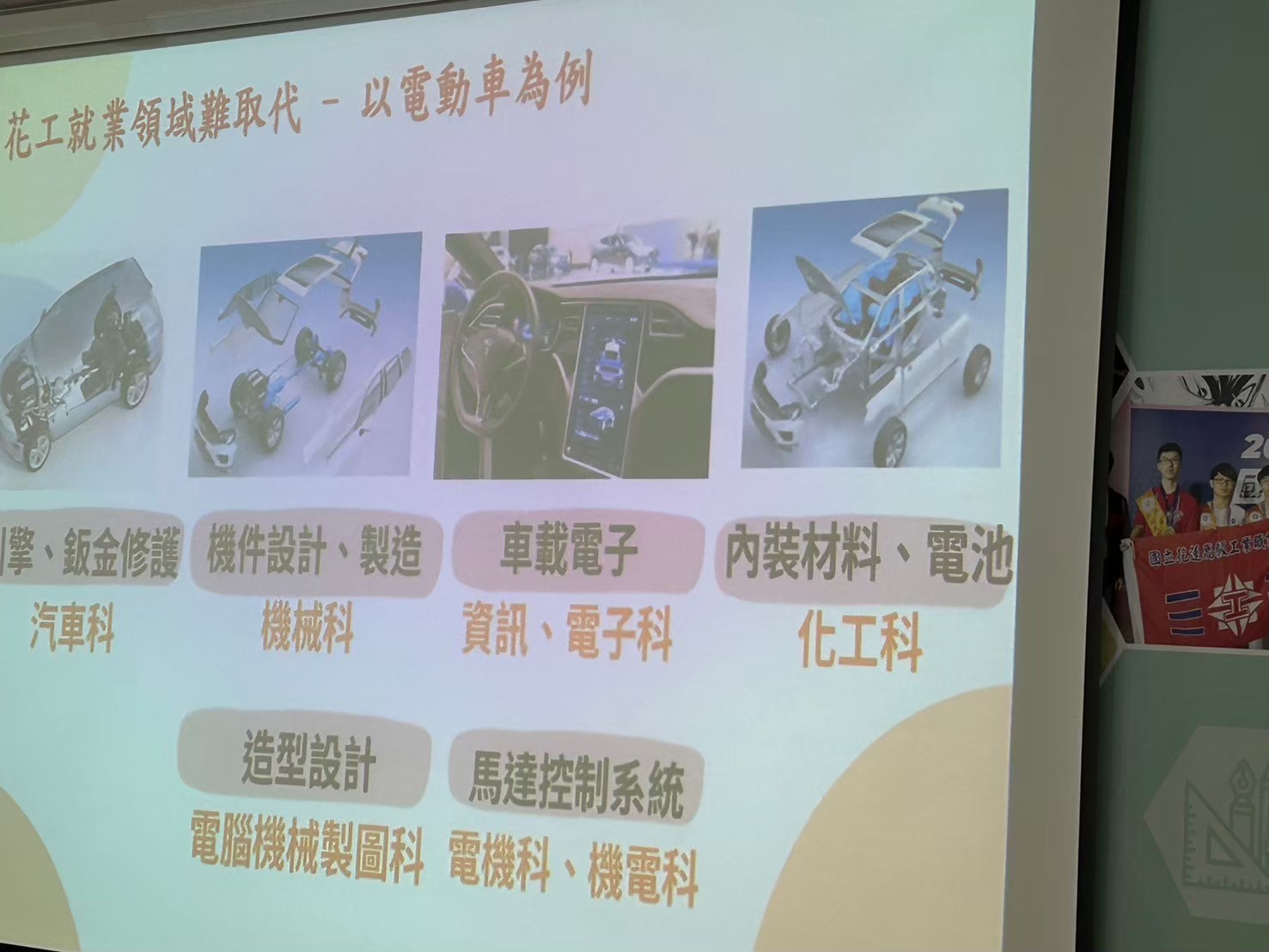 本學期高中職生涯參訪,我們來到花蓮高工與花蓮高農,在張世穎老師的介紹下,我們看見了花工的產學合作為花工的學子開拓了台電與台積電的高職畢業即就業的機會,只要願意努力願意學,每天進步1%,一年之後也能成長37.38,只要肯做肯學,總是有機會可以出人頭地;此外,我們參訪了製圖科與汽修科,學生從設計開始製圖到最後指尖陀螺產出,親身體驗從想法設計到成品產出的過程;汽修科了解到只要肯動手肯操作,不怕吃苦,汽車、機車都能掌握手中。