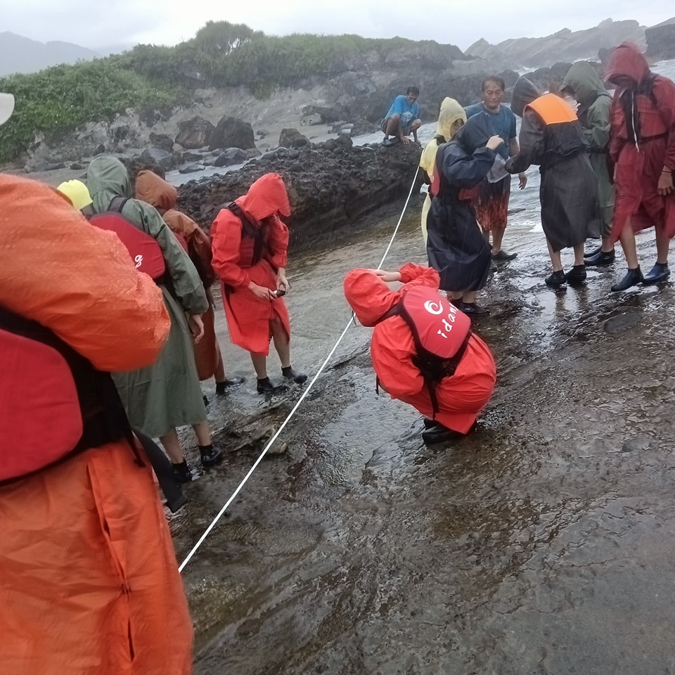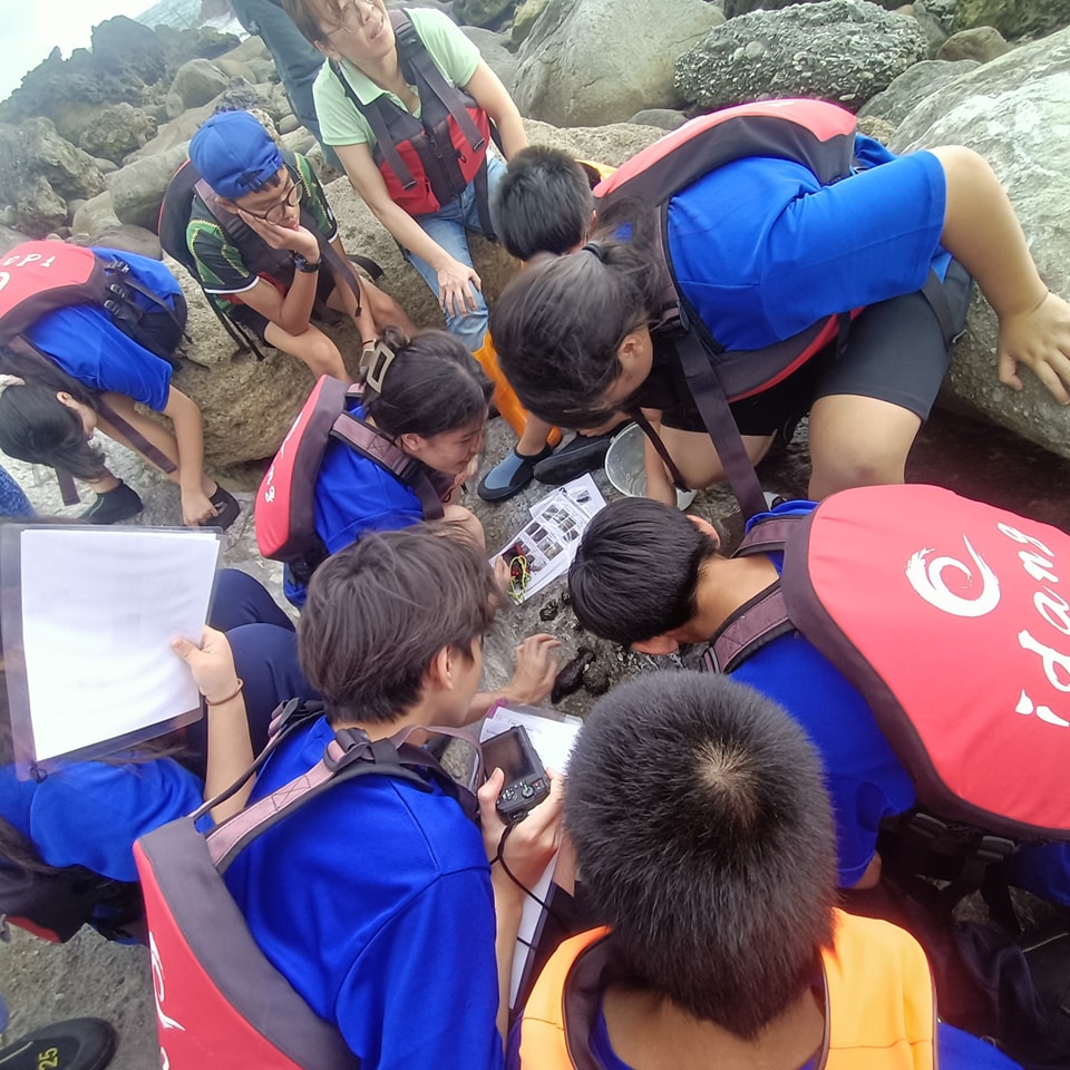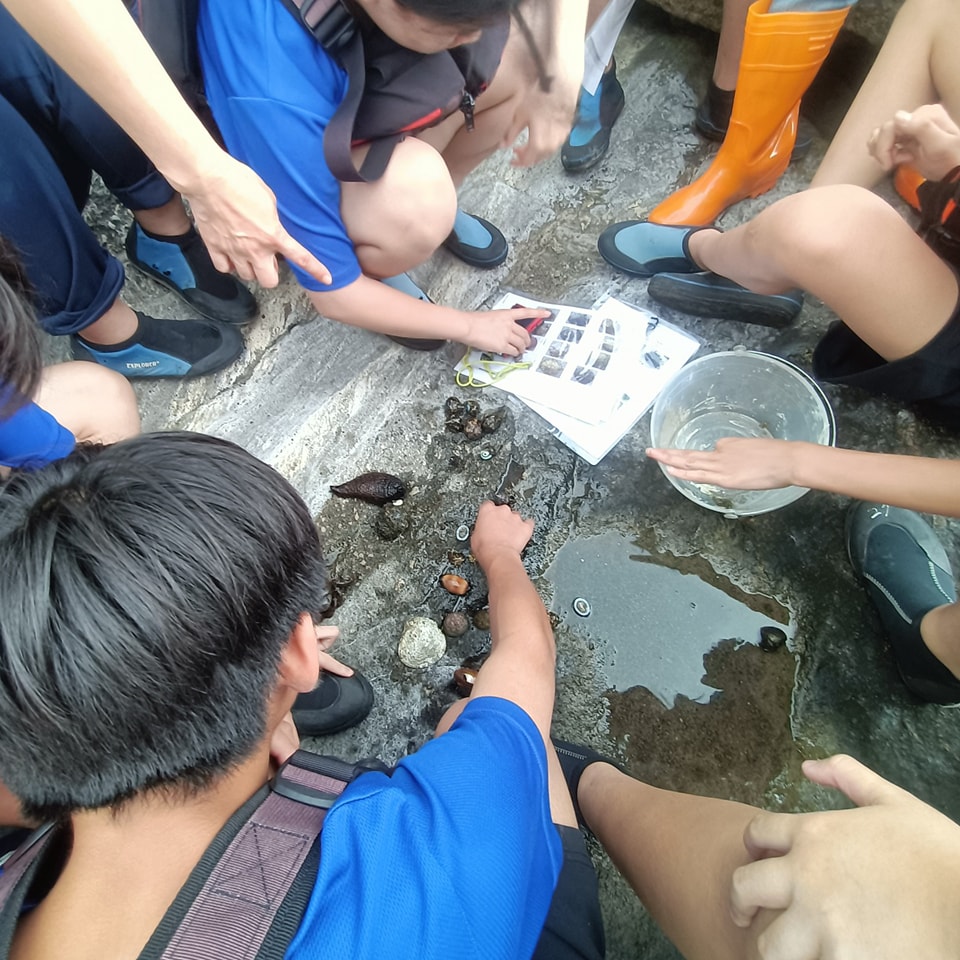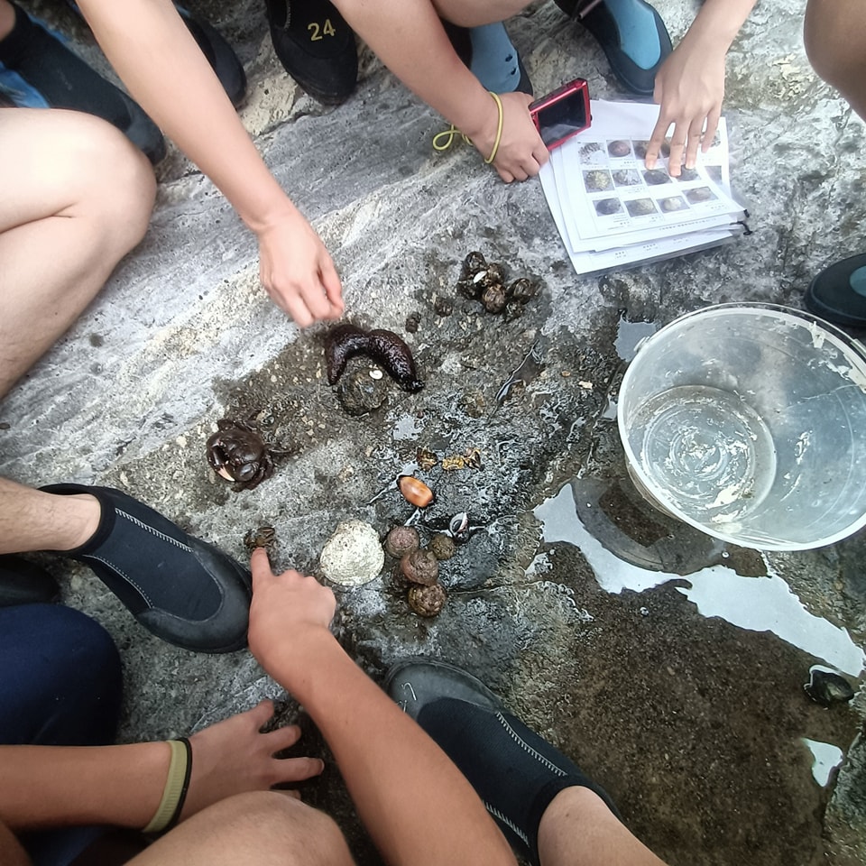 第二次活動,Candy老師在岸邊先讓同學認識潮間帶的功能、監測如何執行,如拉監測線、分組觀察、監測範圍、觀察技巧、拍照取景還有物種分類及辨識等等,感謝在石梯港執行監測教練,帶來的他們採集的物種,讓同學們有實際認識及比對圖鑑。