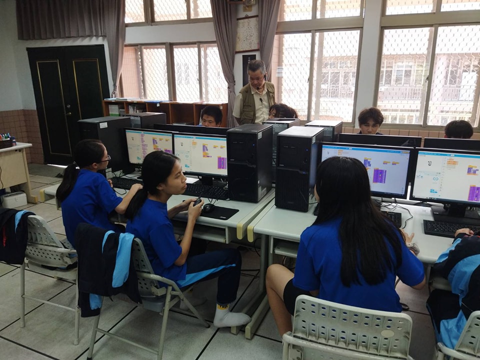 本校資訊科技課程與國立光復商工職校合作,在4/28下午展開第一場,由本校七年級學生參加,課程由高職端資處科劉洲主任指導,內容為程式設計,主題是「運算思維介紹-使用童芯派」,學生學會使用程式設計在開發板上設計文字、燈光效果及可以錄音,讓學生覺得新奇,芳瑜同學表示「他最喜歡的環節是在童芯派上錄音,一個按鈕就可以播音,今天活動很好玩,期待下次有類似的活動。」開啟學生對資訊教育的新視野。下週將由八年級學生接力,期待碰出資訊學習樂趣。