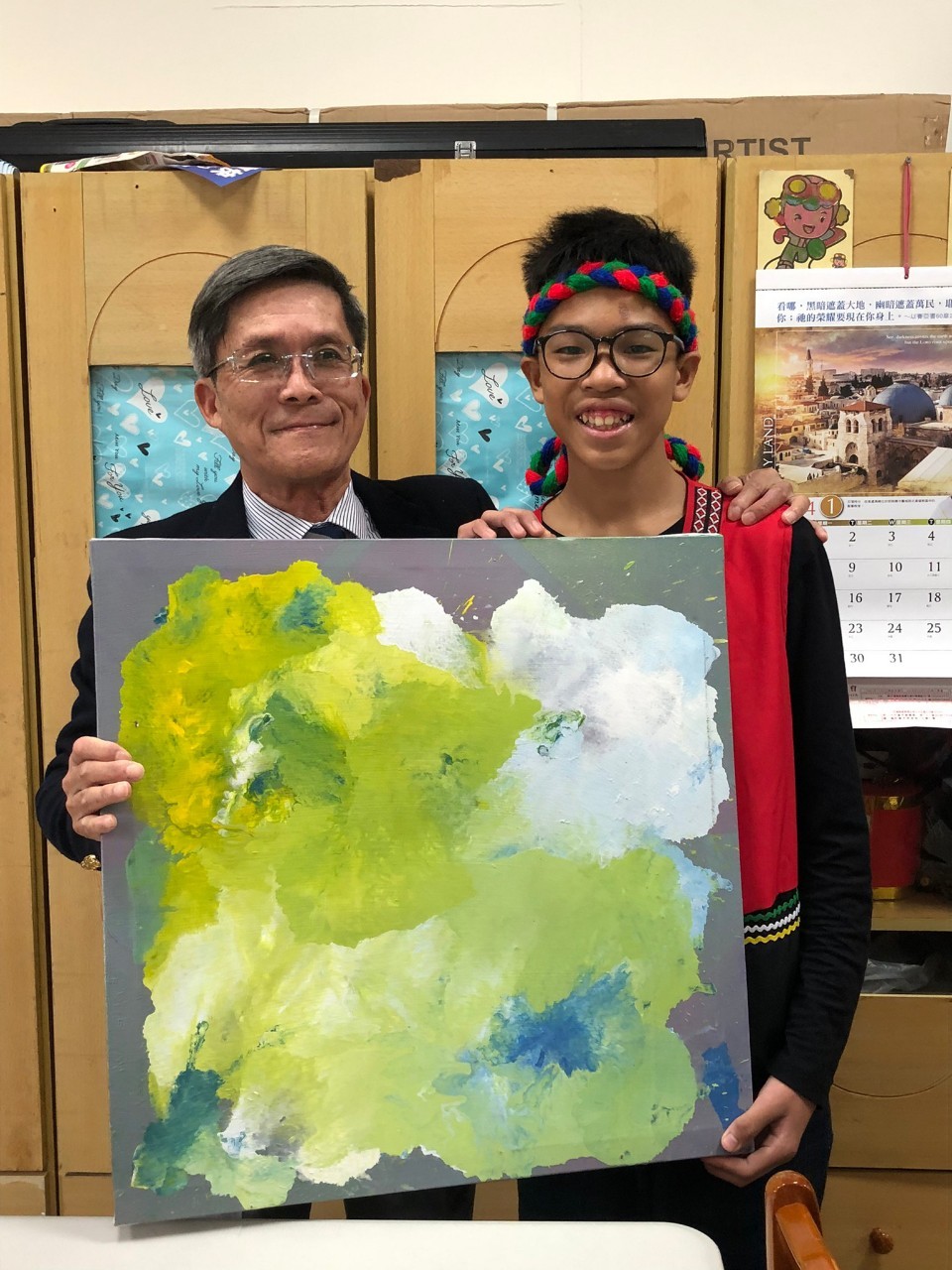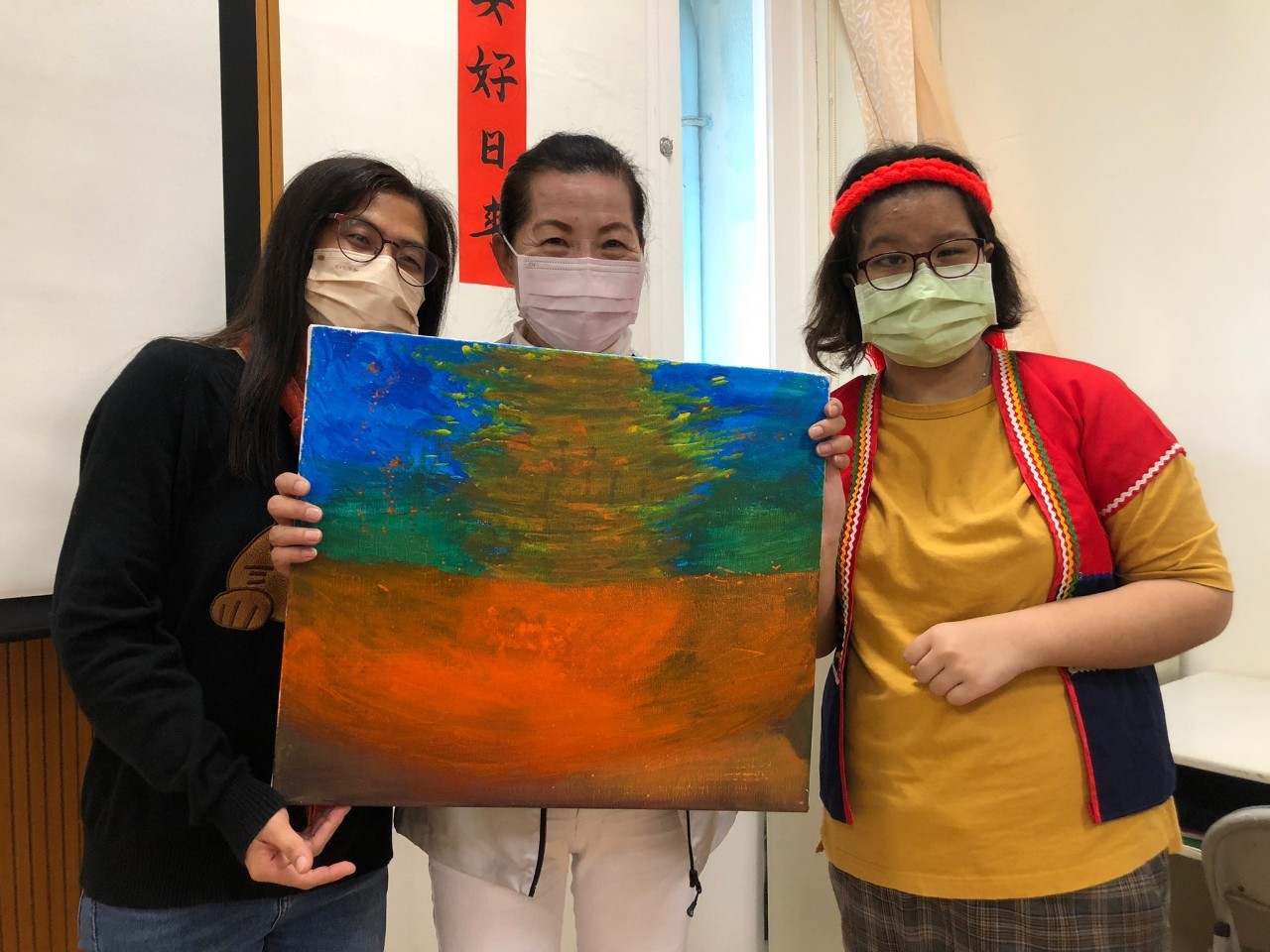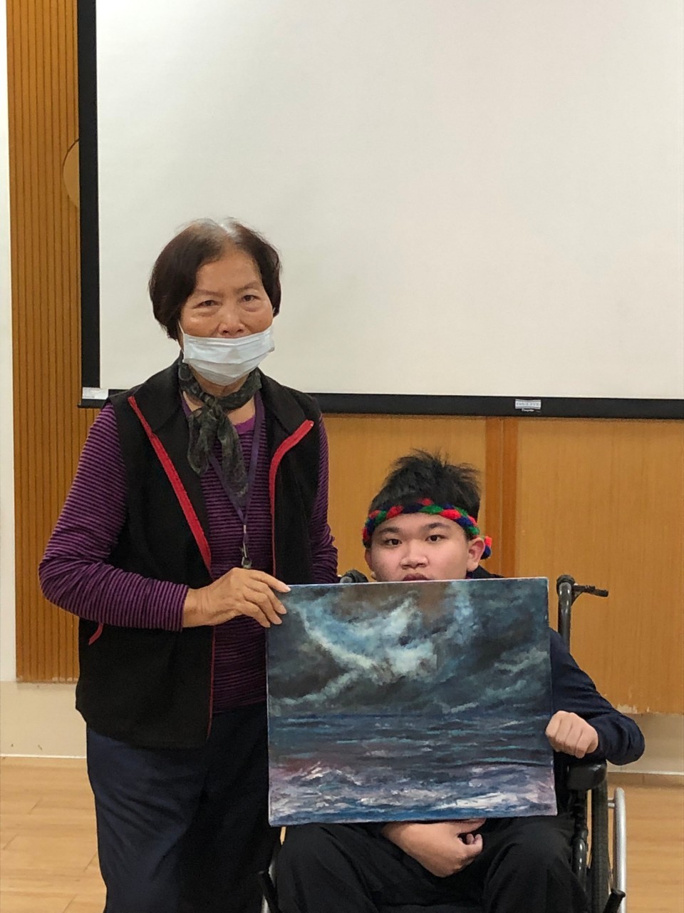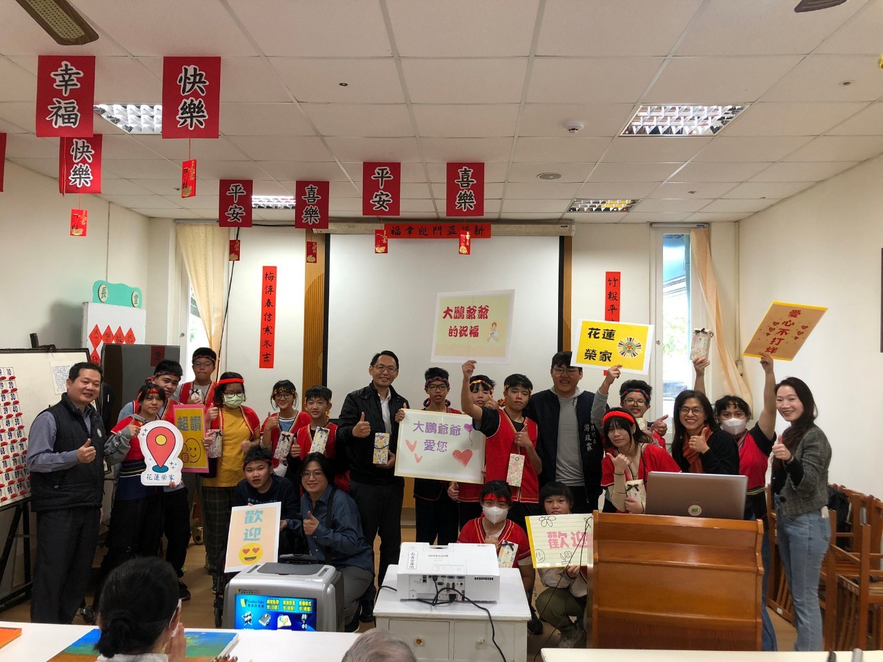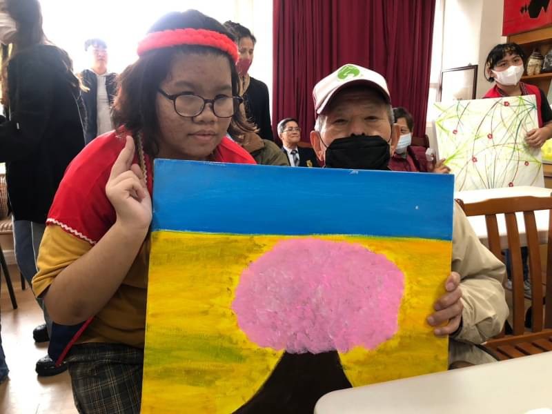 豐濱國中校長施宜廷一早八點就來到花蓮榮譽國民之家現場,一起見證學生們經歷「施比受更有福」之獻唱、祝禱、送畫的美麗畫面,也語帶驕傲的口吻分享著豐中小學堂學生屢次在畫作上的得獎事蹟,同時肯定與嘉許學生願意用贈畫行動來傳愛送暖給長者。