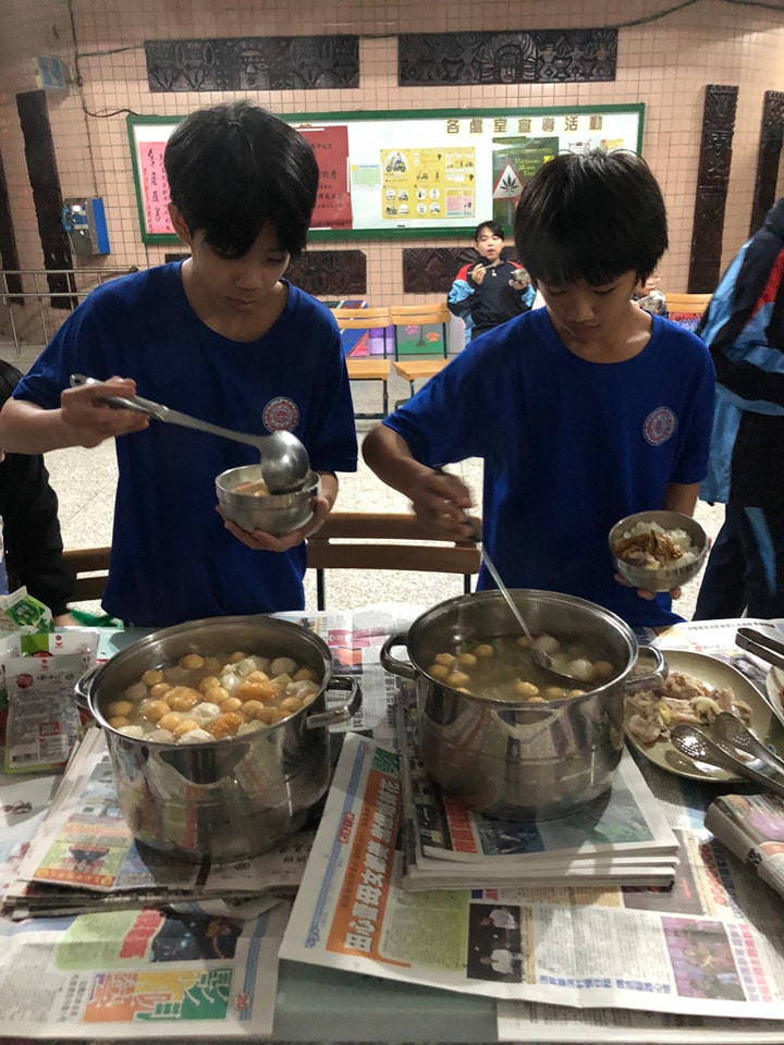 上週五晚是小學堂品格營歲末暖心圍爐聚會,特教教師張豐驛老師熱情付出張爸爸-號稱丸子達人-的各樣手作丸子並邀請飛揚兒少服務團隊和學生們一起歡聚,廚藝達人金品老師信手拈來就備好25份青少年絕對吃得飽的香噴白飯兩大鍋外加滷味等超級下飯的配菜;學生們更事先設計手繪卡片,表達對志工老師們的感謝,亦適逢飛揚兒少服務團隊成員之一「襪子老師」即將步入婚禮殿堂,也ㄧ併透過卡片傳遞滿滿的祝福~