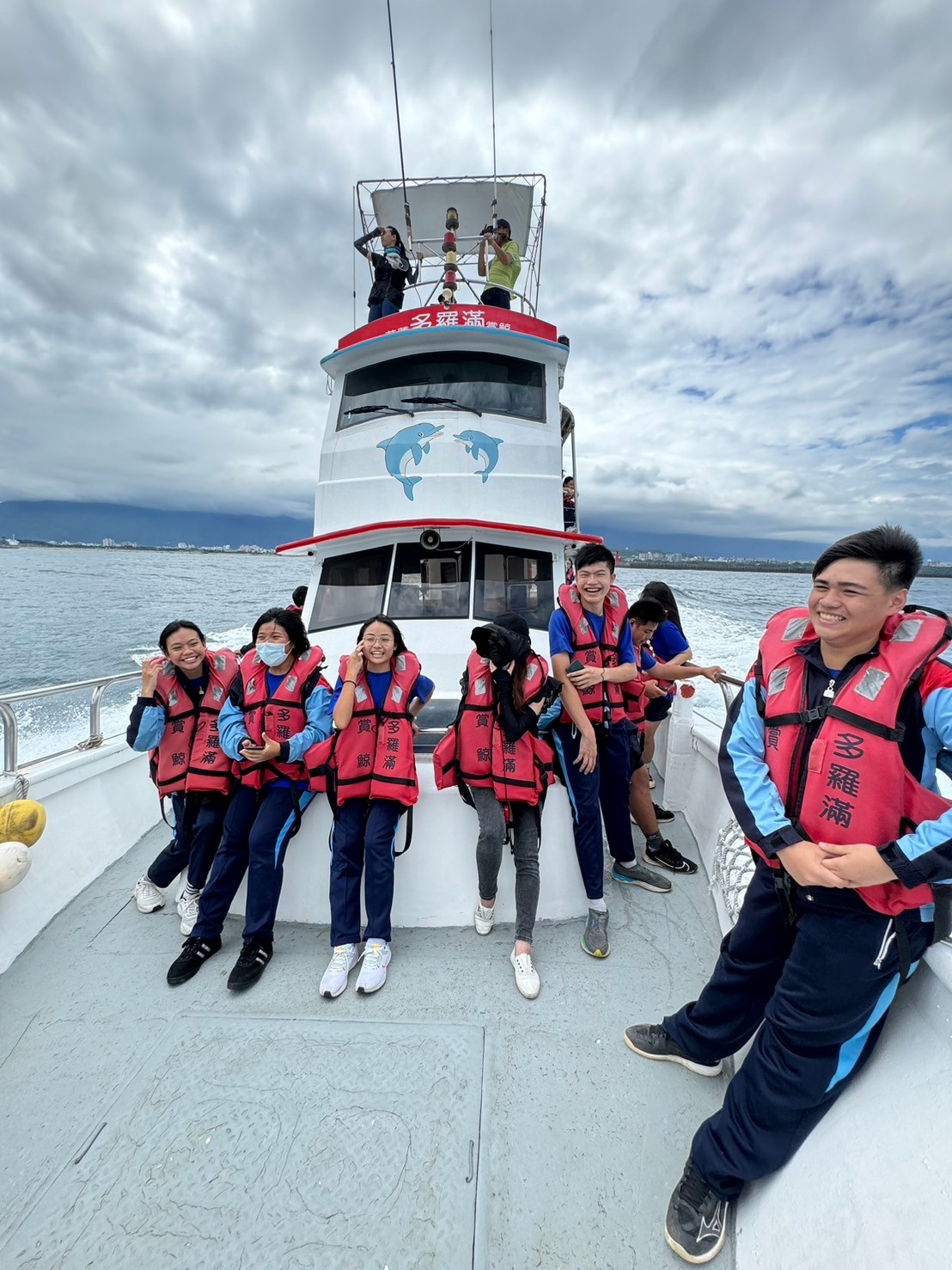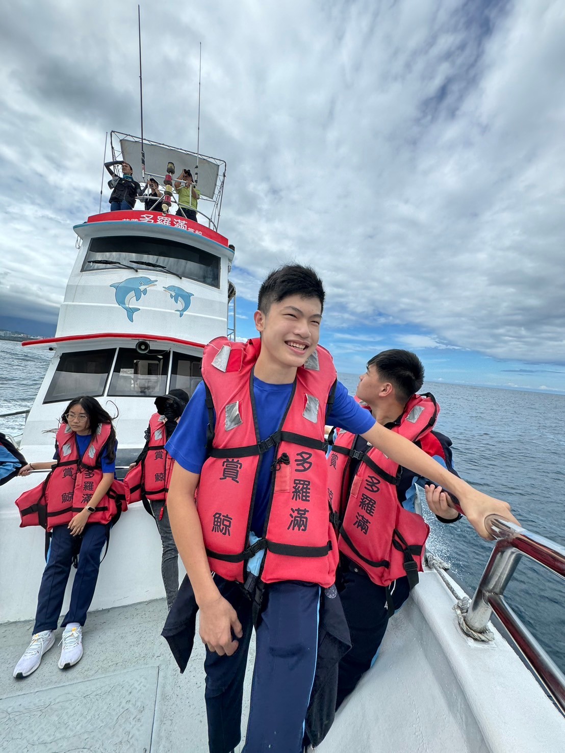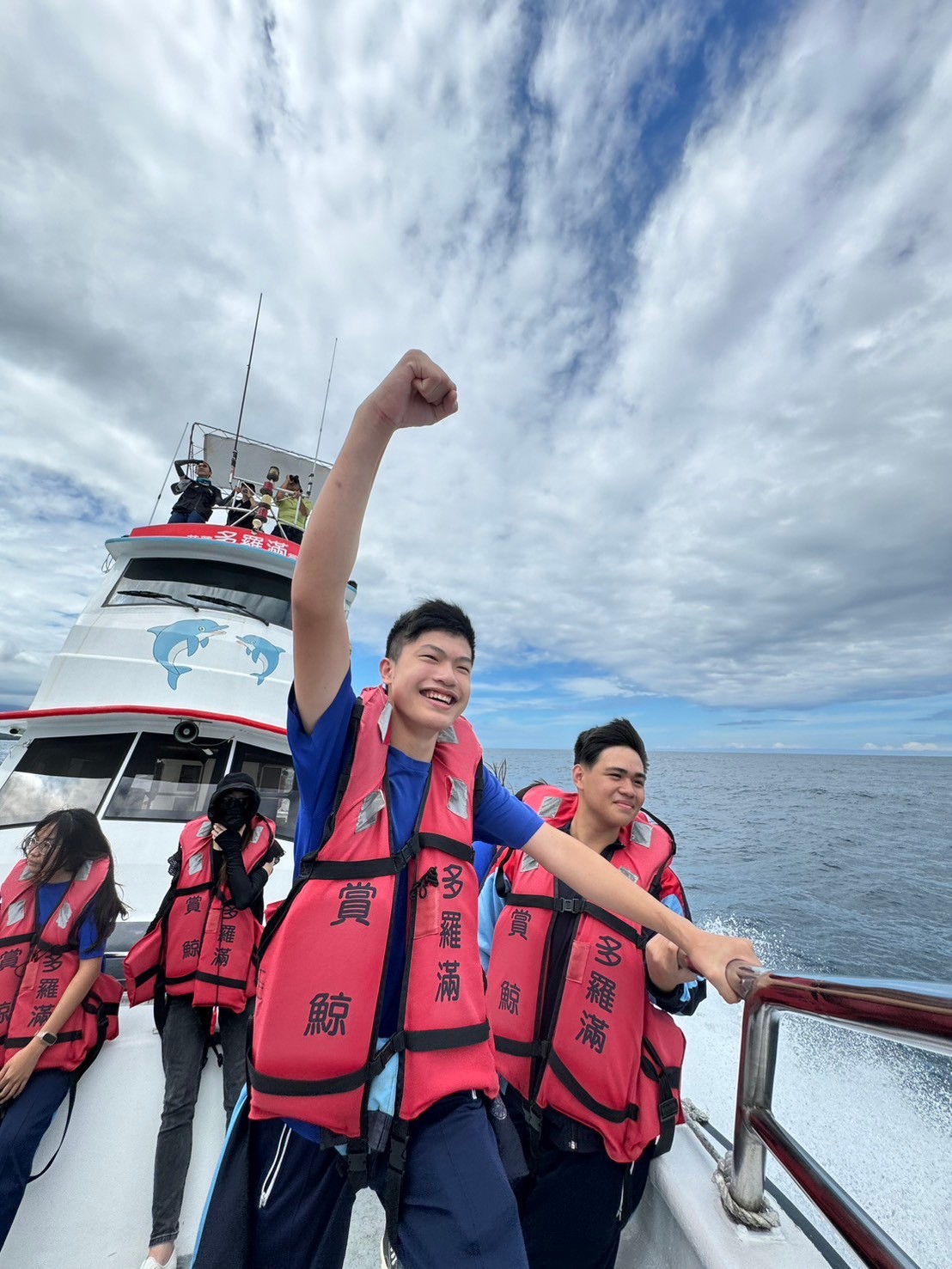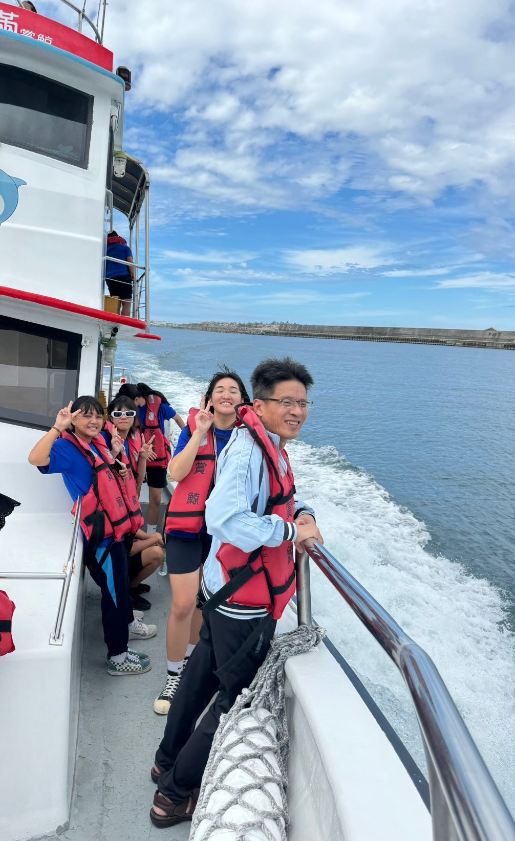 5/30豐濱國中九年級師生參與黑潮海洋基金會「跟著鯨豚來海上」活動,進行了一個下午的賞鯨戶外教學,本來很擔心幾天的午後雷陣雨是否會影響行程,但老天爺保佑,讓我們今日的出航有微風和白雲相伴,天氣舒適宜人。