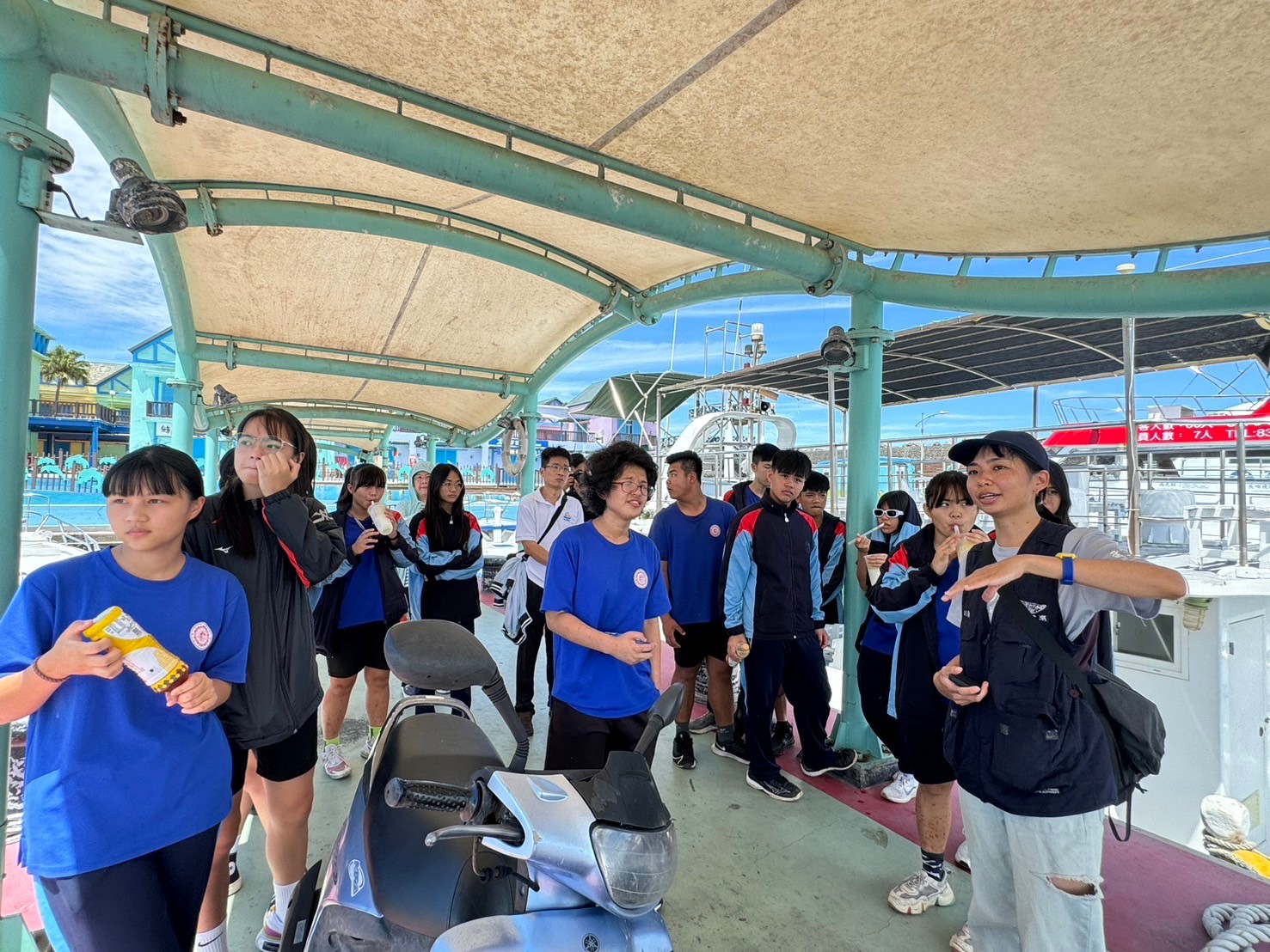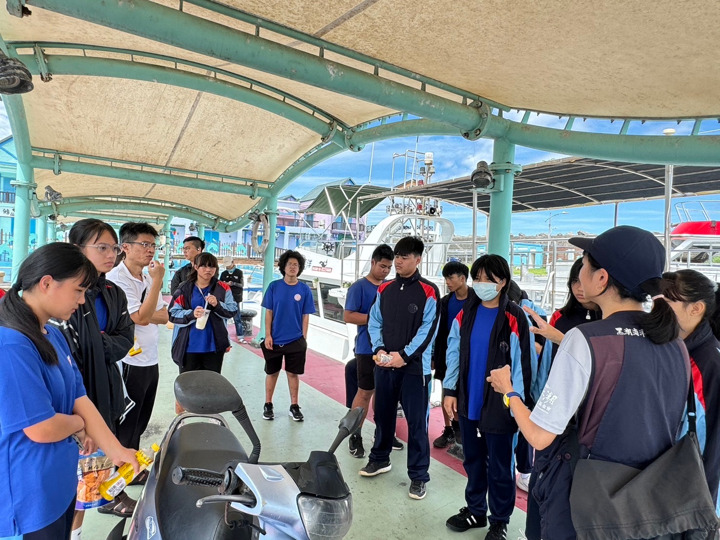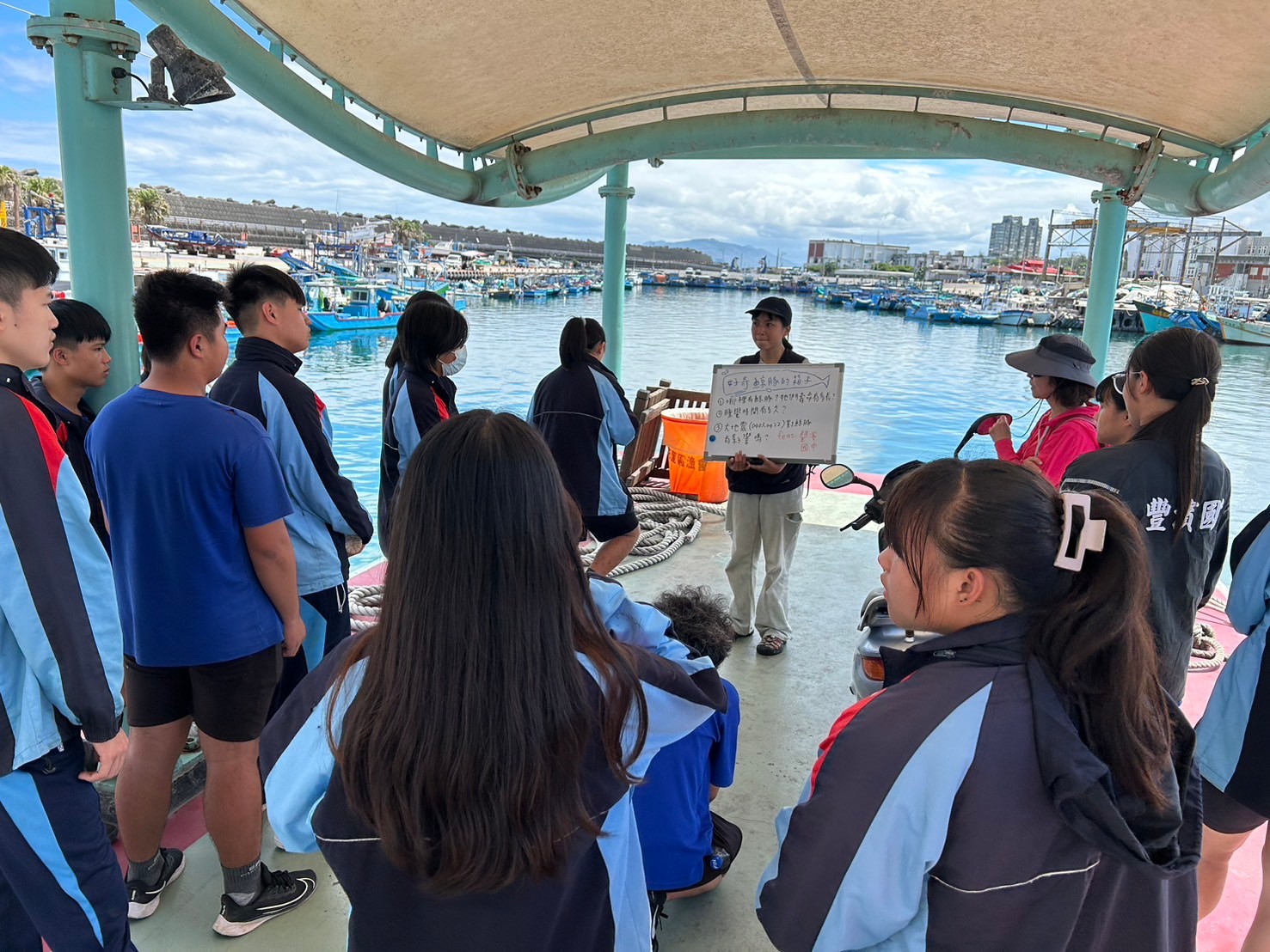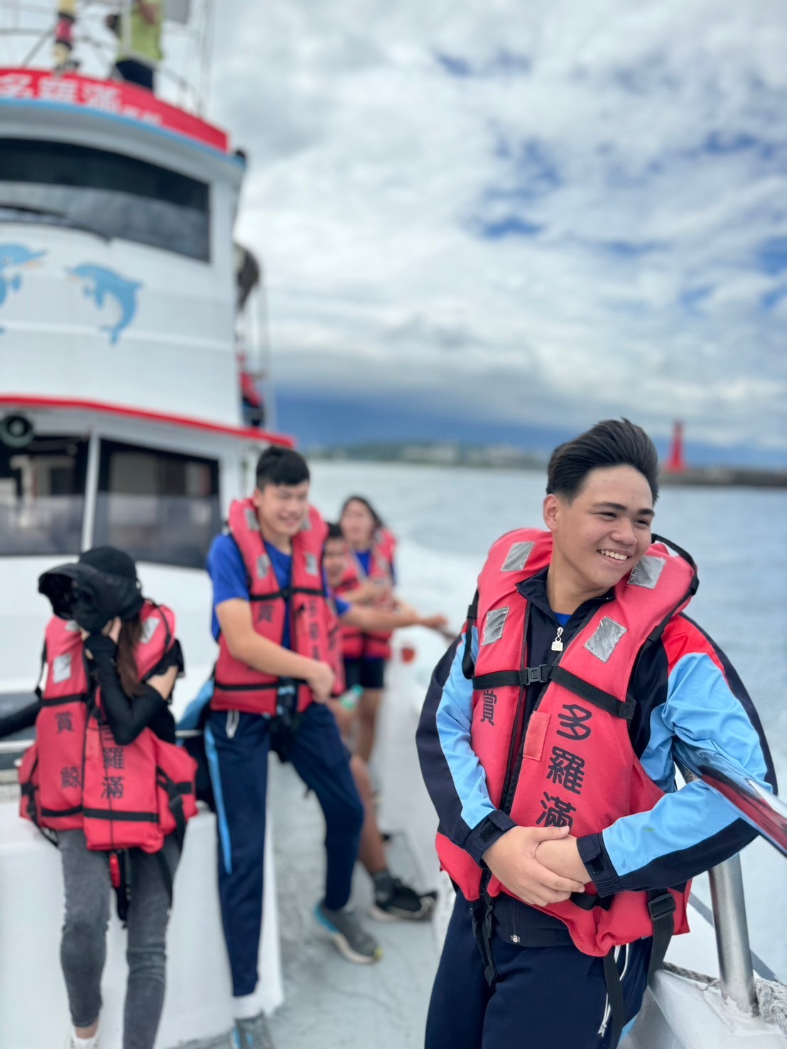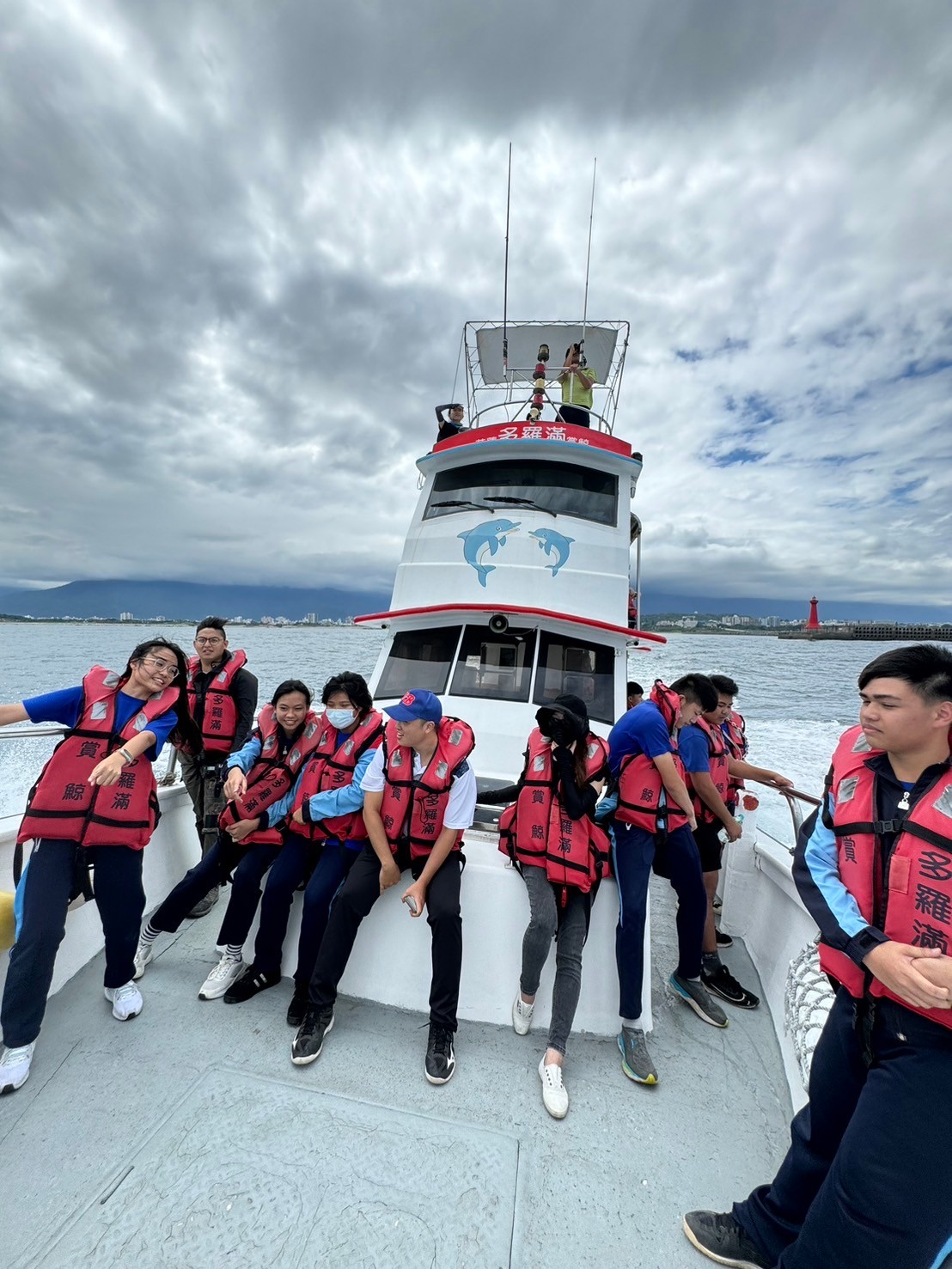 5/30豐濱國中九年級師生參與黑潮海洋基金會「跟著鯨豚來海上」活動,進行了一個下午的賞鯨戶外教學,本來很擔心幾天的午後雷陣雨是否會影響行程,但老天爺保佑,讓我們今日的出航有微風和白雲相伴,天氣舒適宜人。