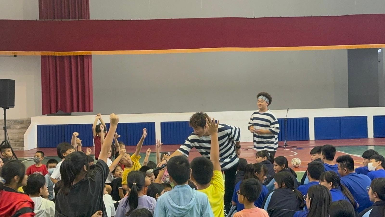 5月22日花蓮縣文化局在豐濱國中舉辦了「玩藝列車」系列活動,為偏鄉學校帶來一場精彩絕倫的藝術盛宴。此次活動邀請了洄響樂坊進行國樂二胡、琵琶、爵士鼓與貝斯四重奏演奏,以及霹靂大頭俠的雜耍球技表演、唐心磊的花式足球和蔣凱麟的花式籃球表演,精彩絕倫的演出引爆師生們的熱情,並獲得滿堂喝彩。
